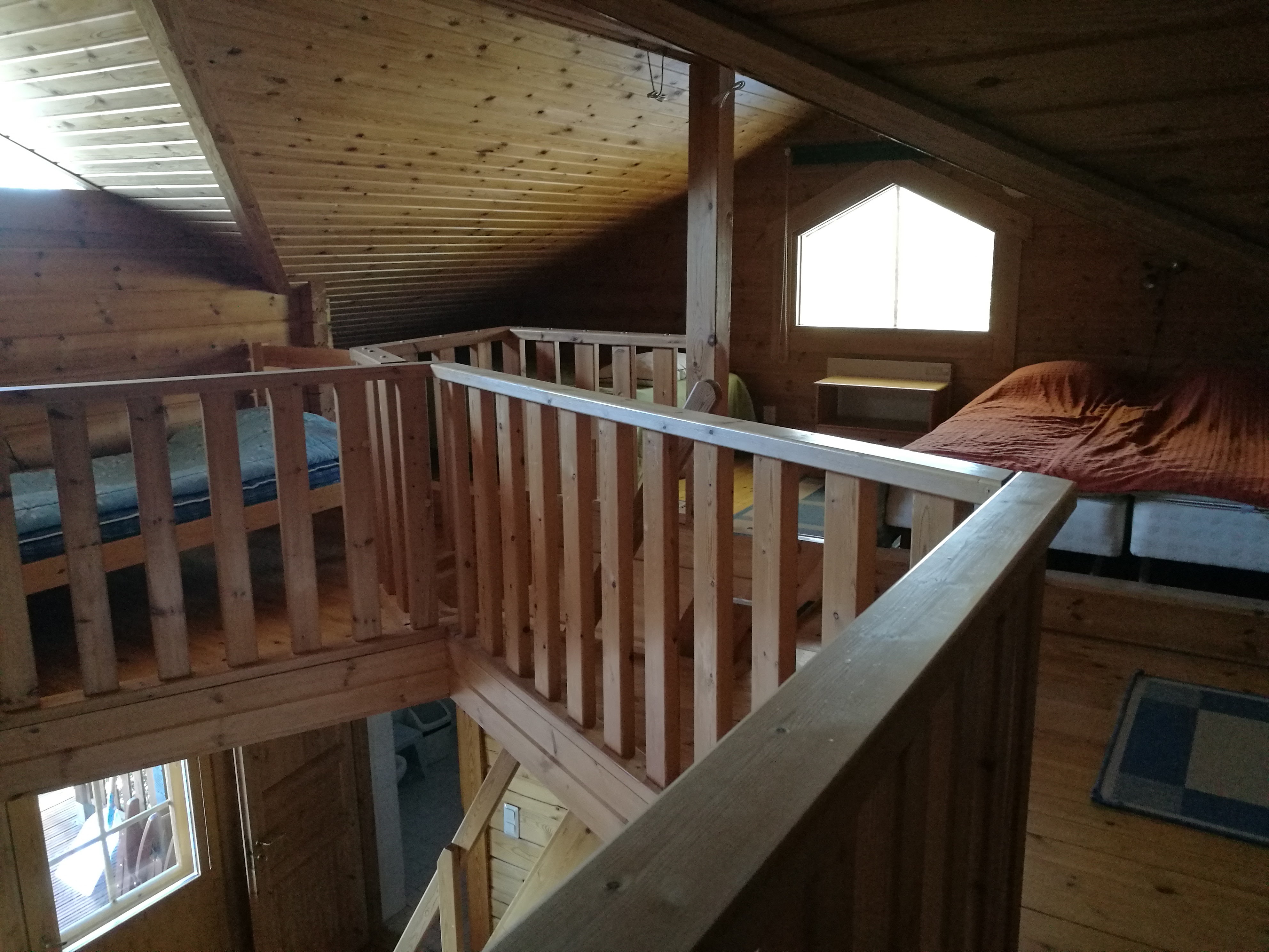 kaksi erillistä makuuhuonetta ja yläparvelta loput nukkumapaikat.