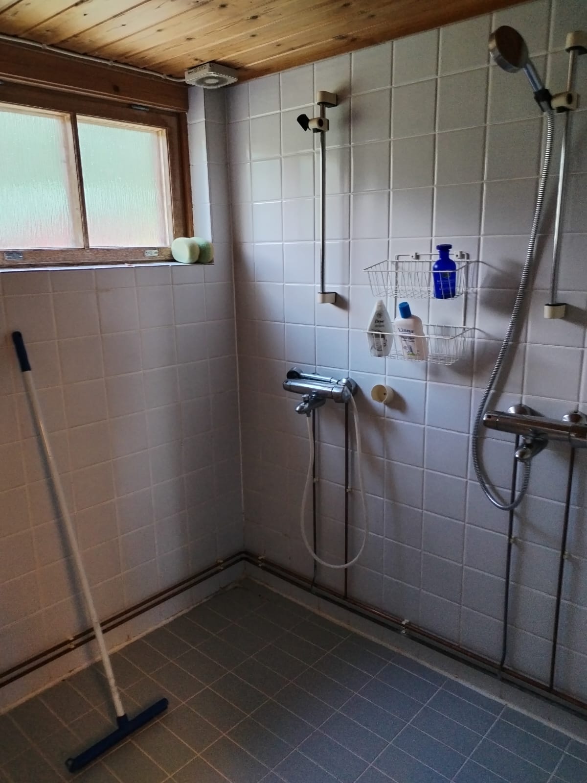 Mökissä on myös kaksi erillistä vessaa sekä kaksi suihkua ja sauna.
